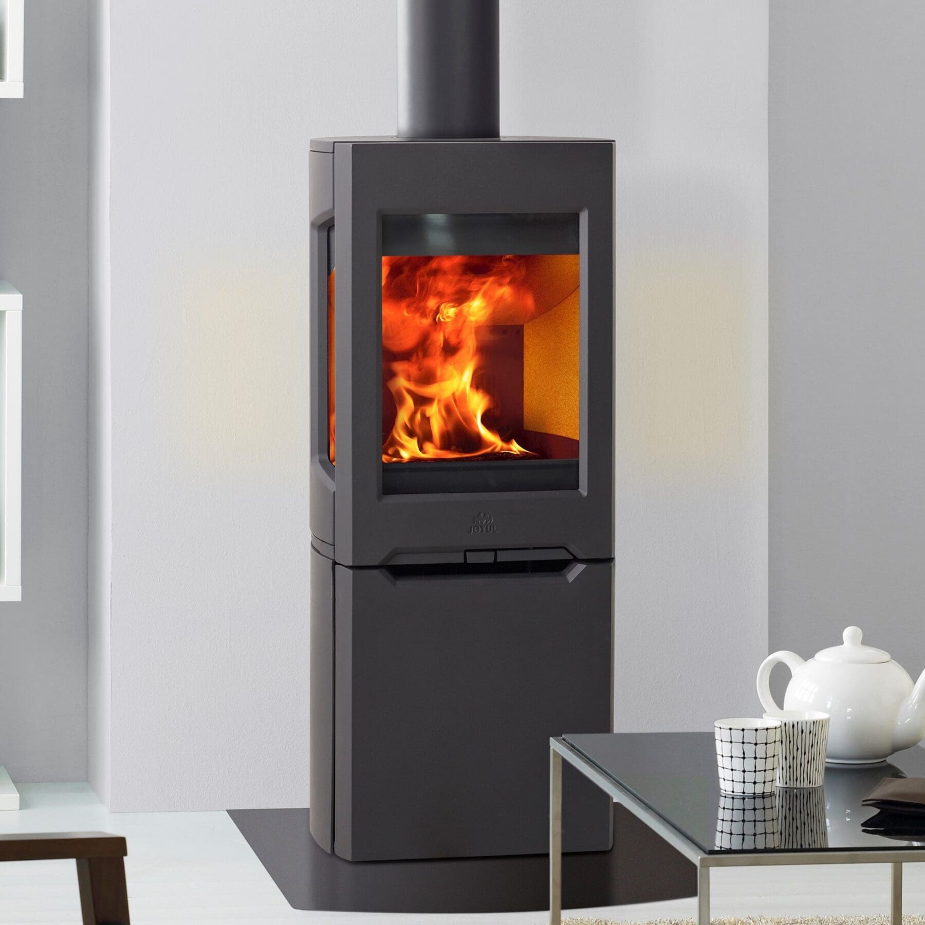 The Jotul 160 series are available with metal sides, side windows, log store or pedestals.